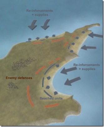 It is very easy to fall into the trap when planning an assault from sea. It is not just a case of getting troops to a coastal belt but also getting the troops to cross the shoreline and enter the hinterland. It is no good performing an assault via sea merely based on maritime supremacy. You need to break out and achieve the overall objective that led to the assault in the first place.